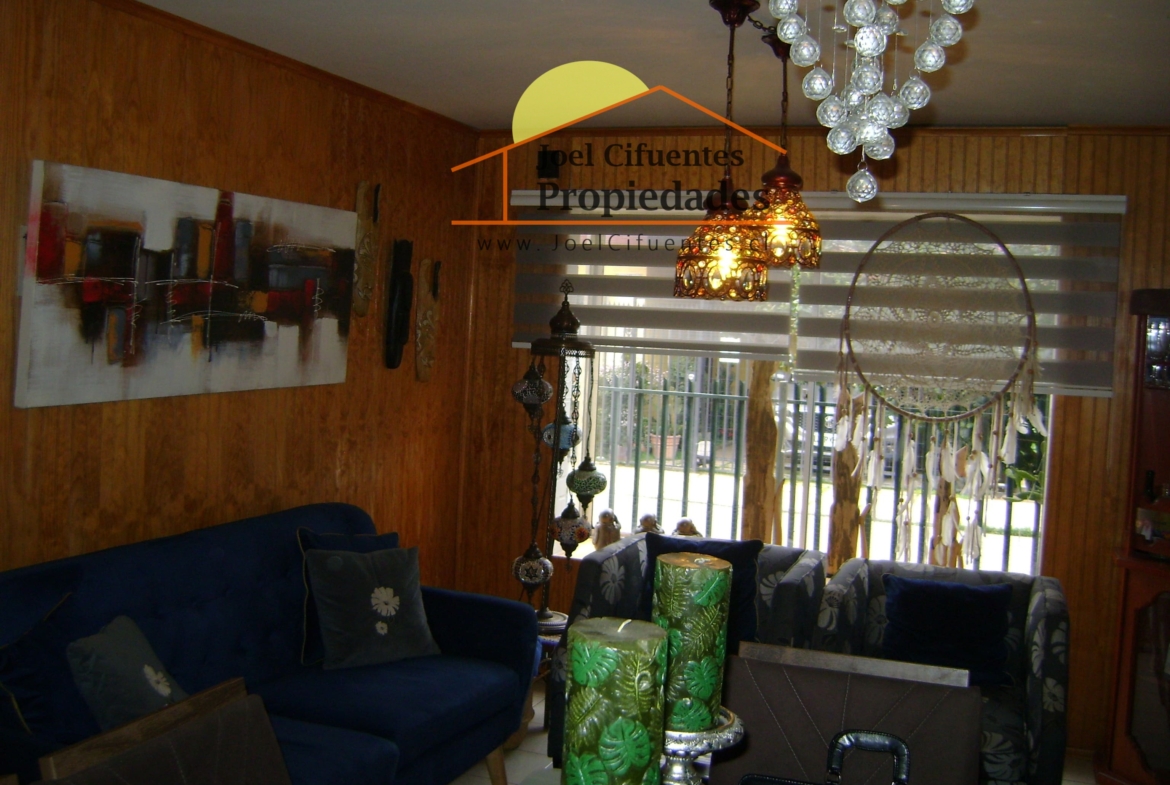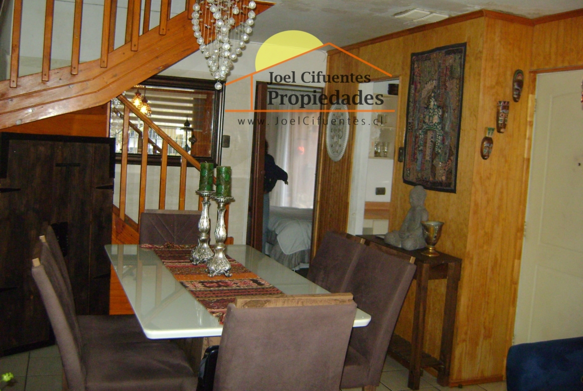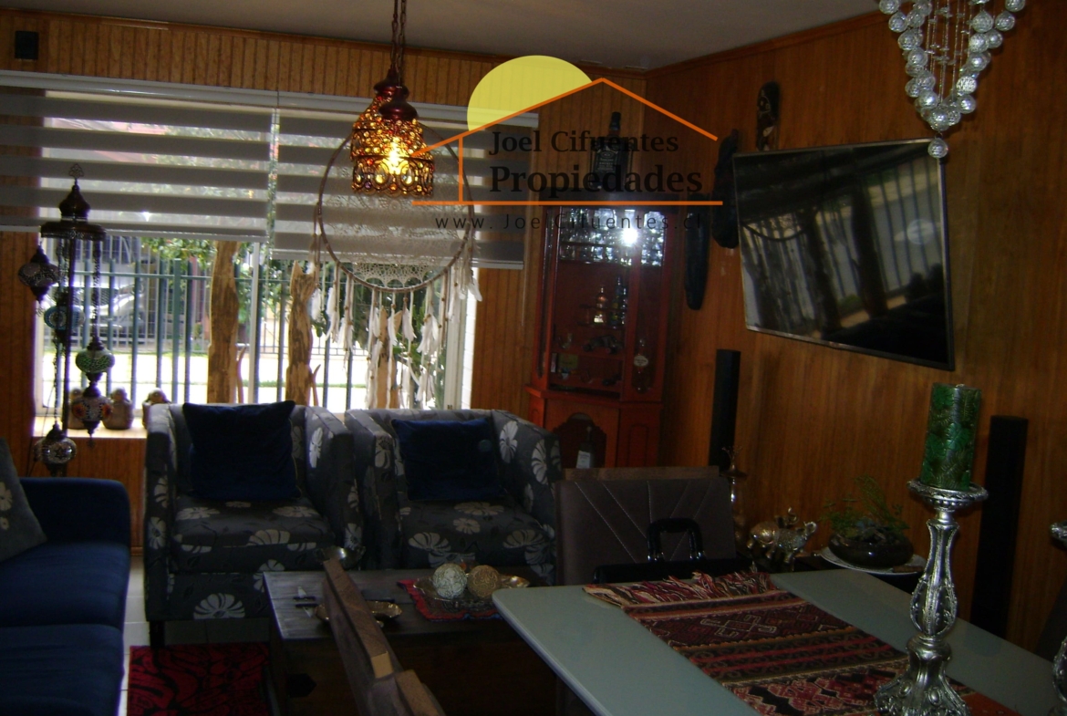 Casa sólida, 2 pisos, pareo simple, living comedor, 3 dormitorios amplios, 2 baños (1 en suite), cocina, hall, ante jardín, patio, quincho techado. Cercano a movilización, supermercados y estación del tren.