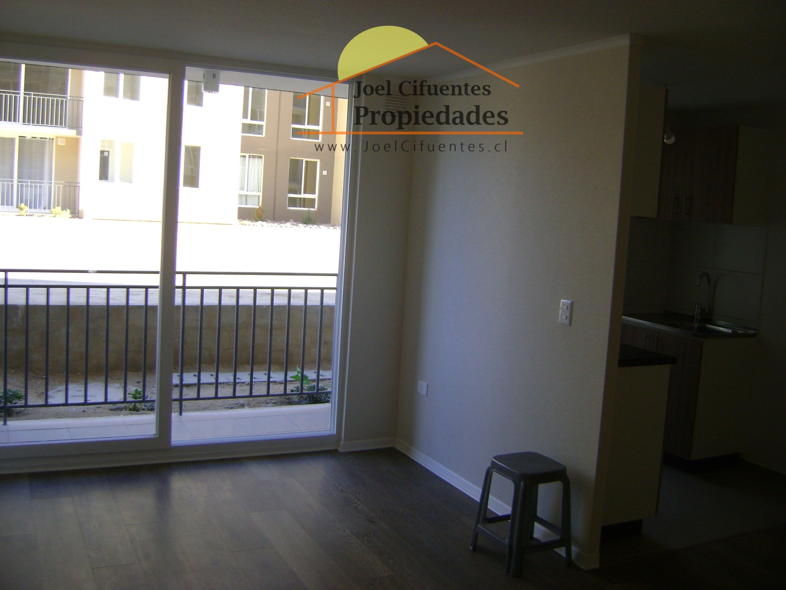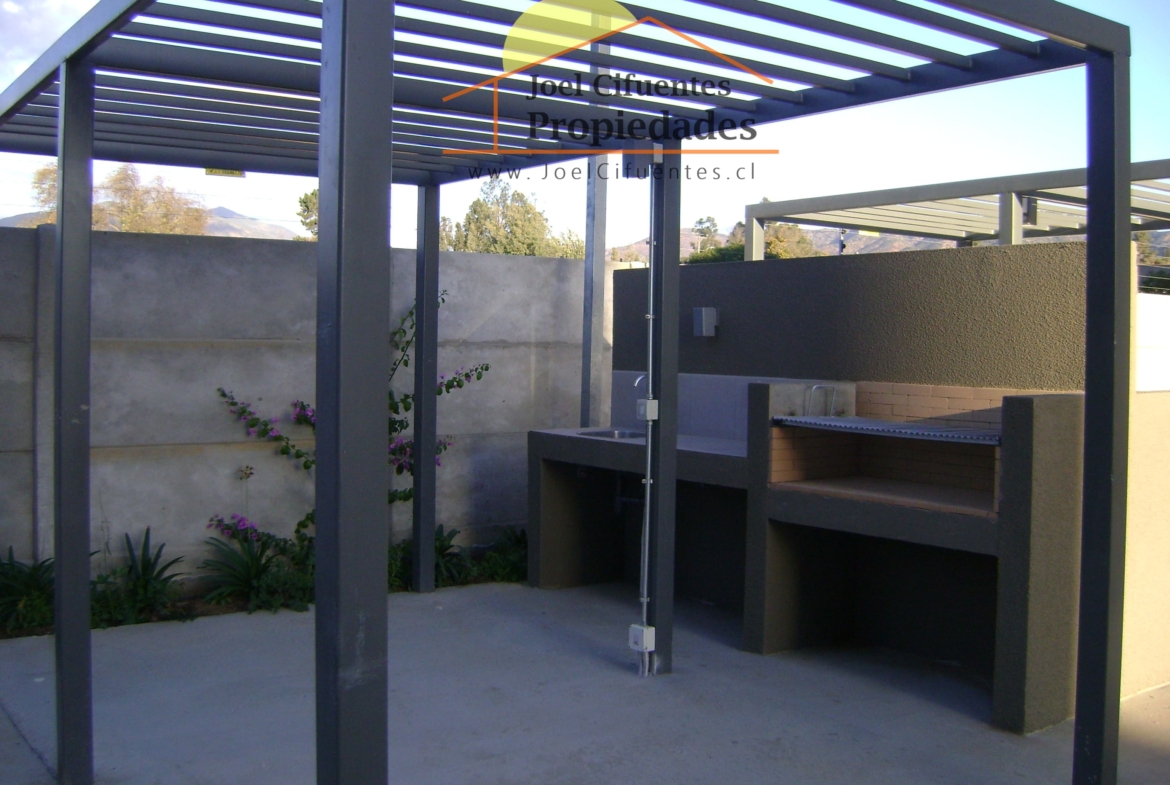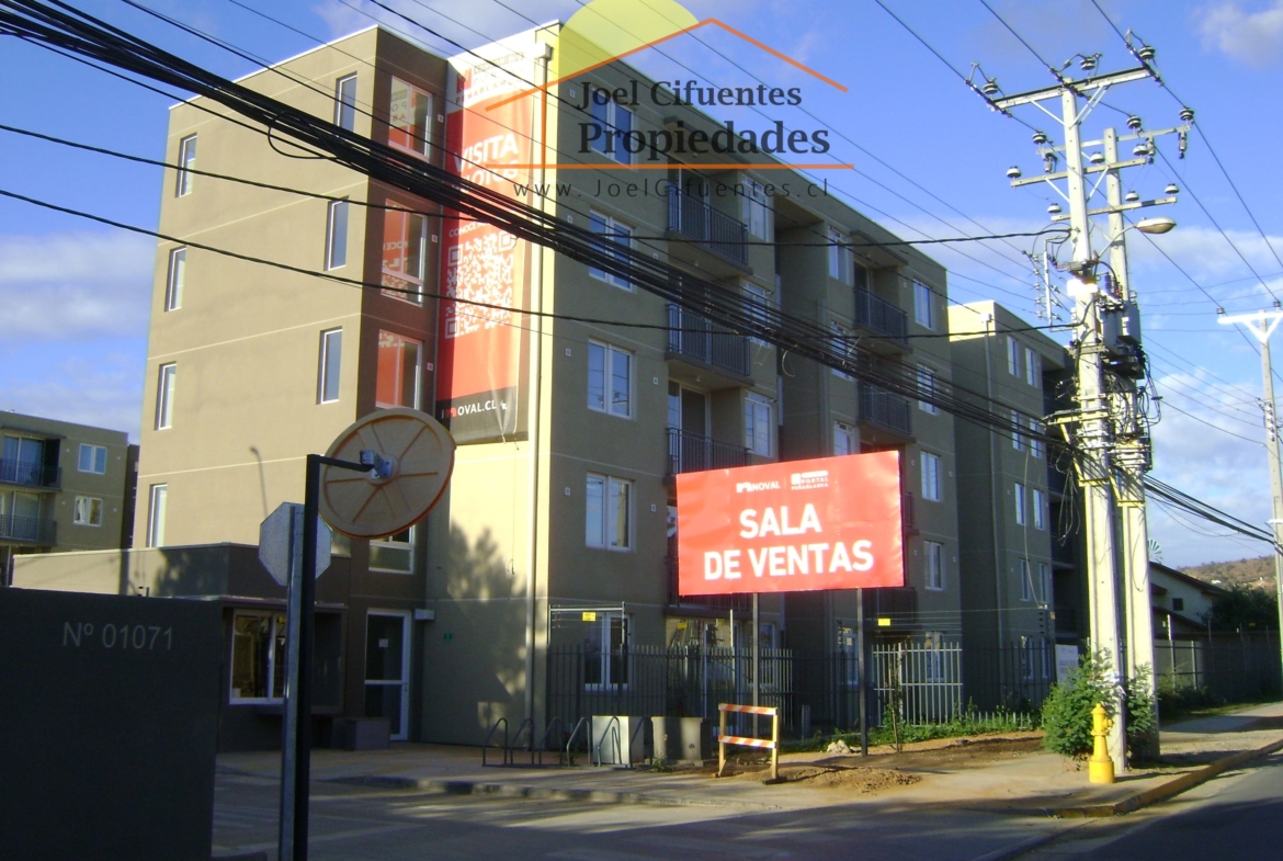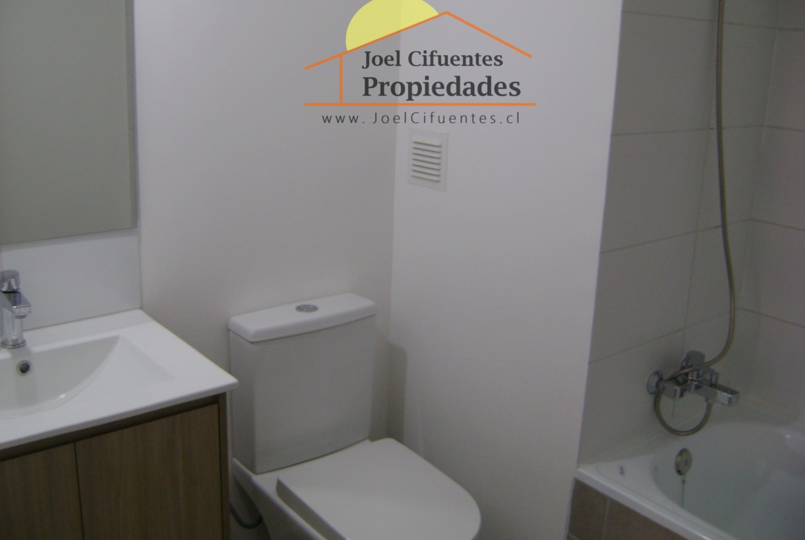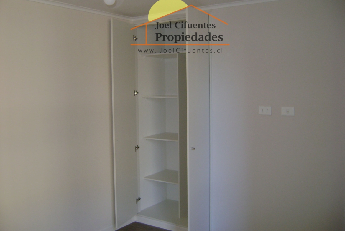 Departamento nuevo, 1er piso, living comedor, terraza, cocina amoblada y equipada (horno, encimera y campana), 2 dormitorios con closet, 1 baño, estacionamiento. El condominio cuenta con conserjes 24 horas, cerco perimetral eléctrico, 2 quinchos, club house y juegos infantiles.