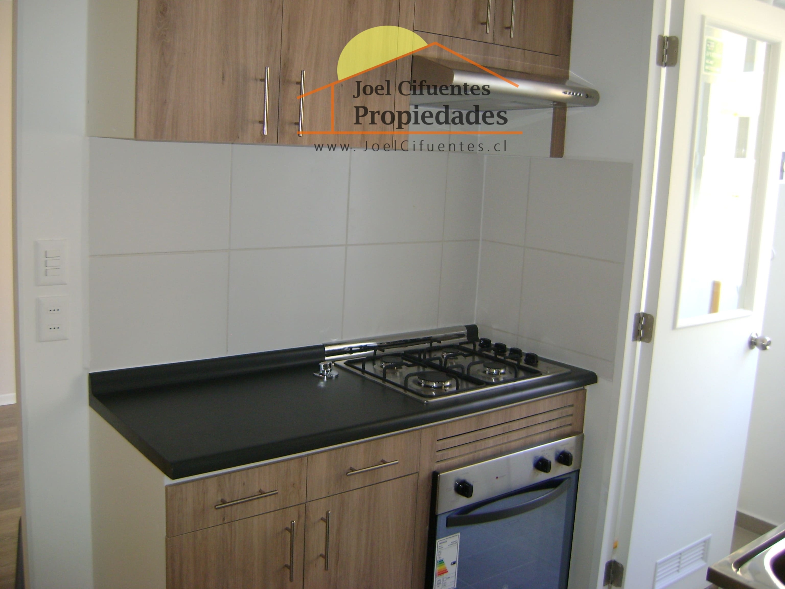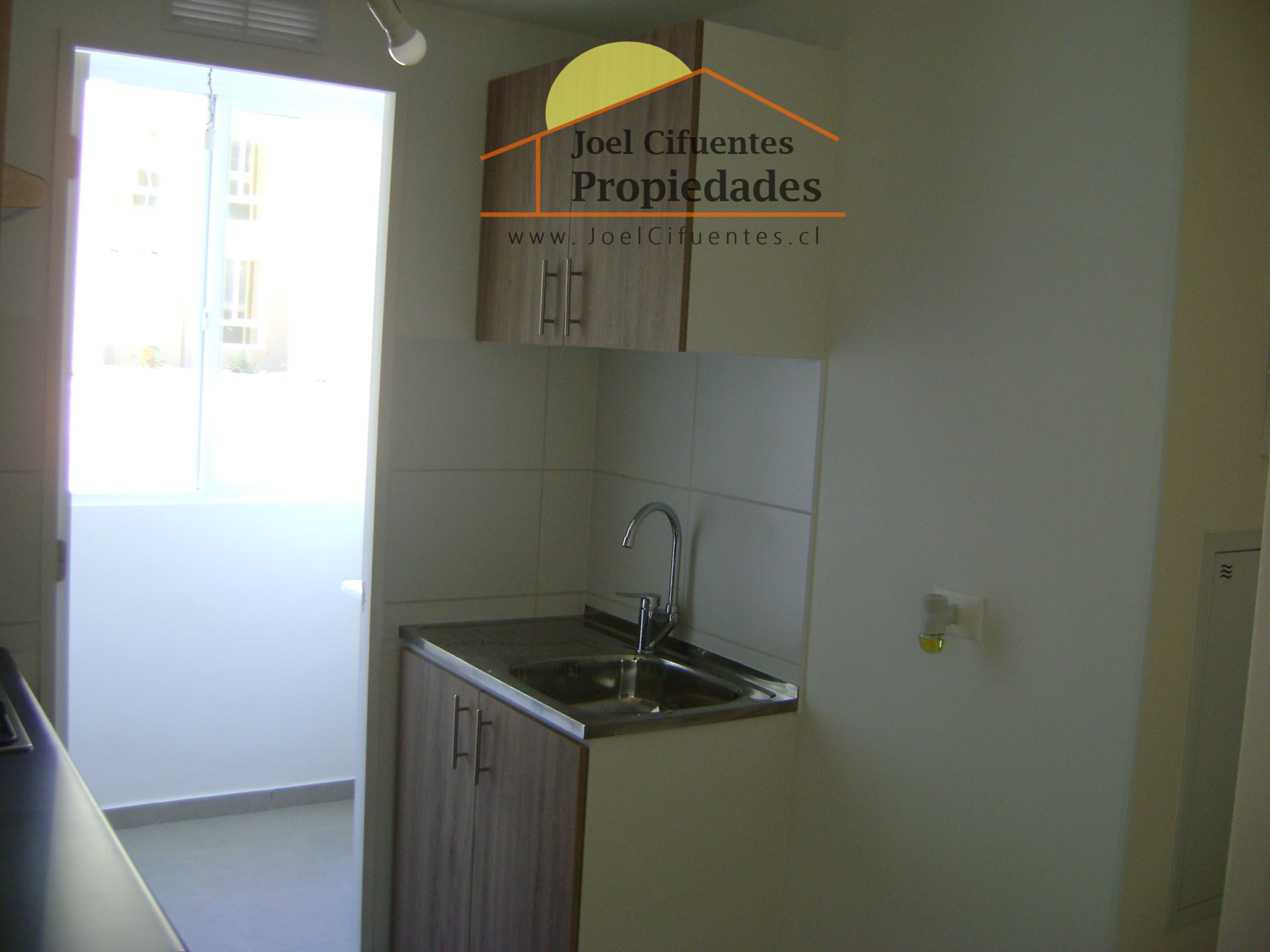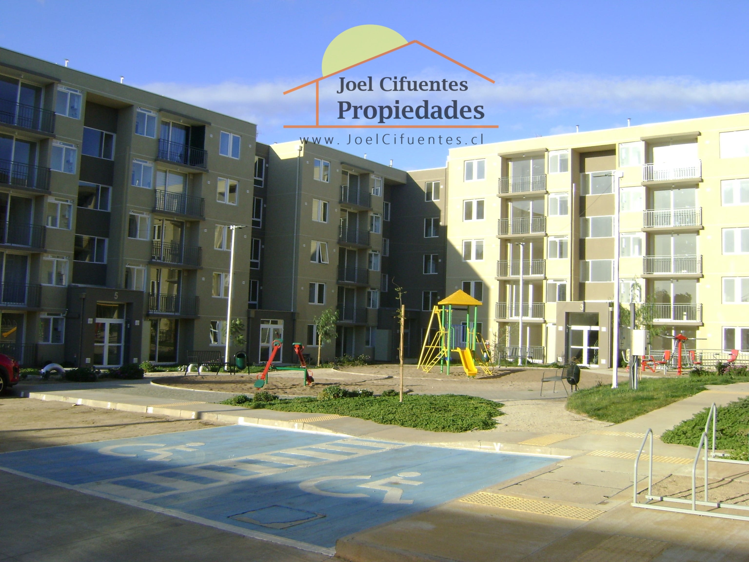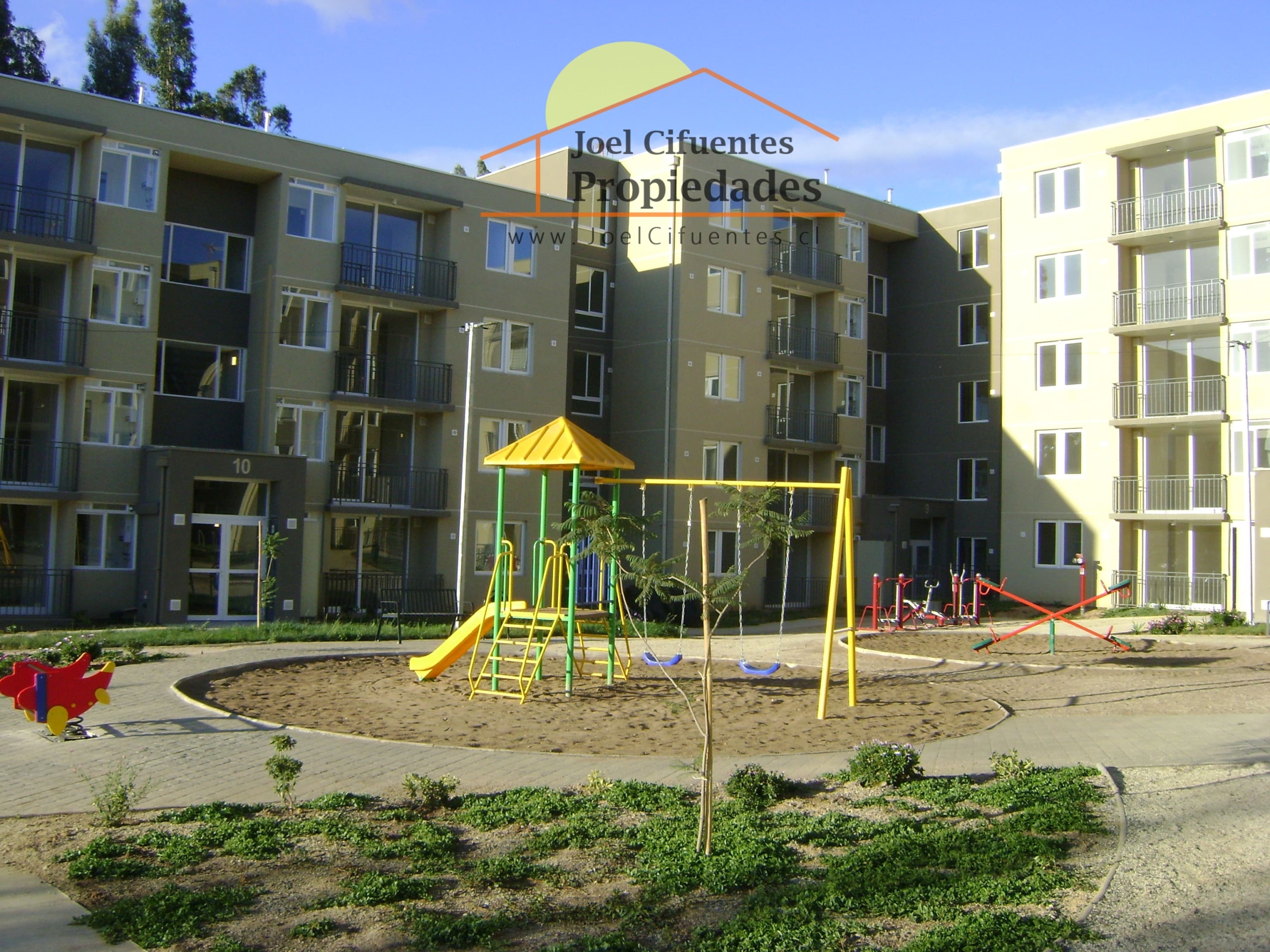 Departamento nuevo, 1er piso, living comedor, terraza, cocina amoblada y equipada (horno, encimera y campana), 2 dormitorios con closet, 1 baño, estacionamiento. El condominio cuenta con conserjes 24 horas, cerco perimetral eléctrico, 2 quinchos, club house y juegos infantiles.